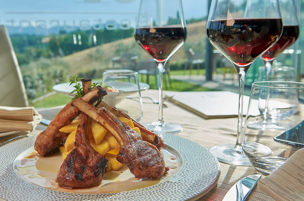 Location ideale sia per il pranzo che per la cena, dispone di un'ampia cantina con un'attenta selezione di vini toscani, per il giusto accompagnamento dei piatti.